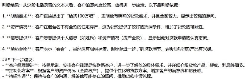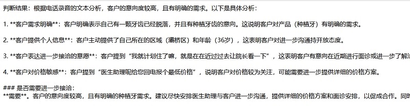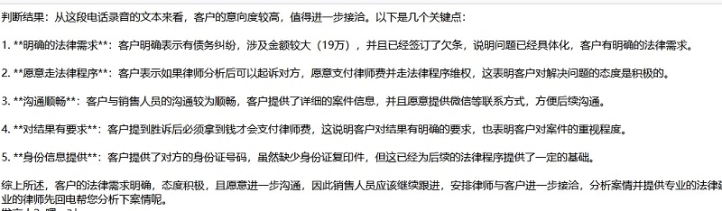 精準捕捉客戶對話中的關鍵詞與情緒傾向,識別潛在需求與隱性顧慮,為后續(xù)溝通策略提供數(shù)據(jù)支持。