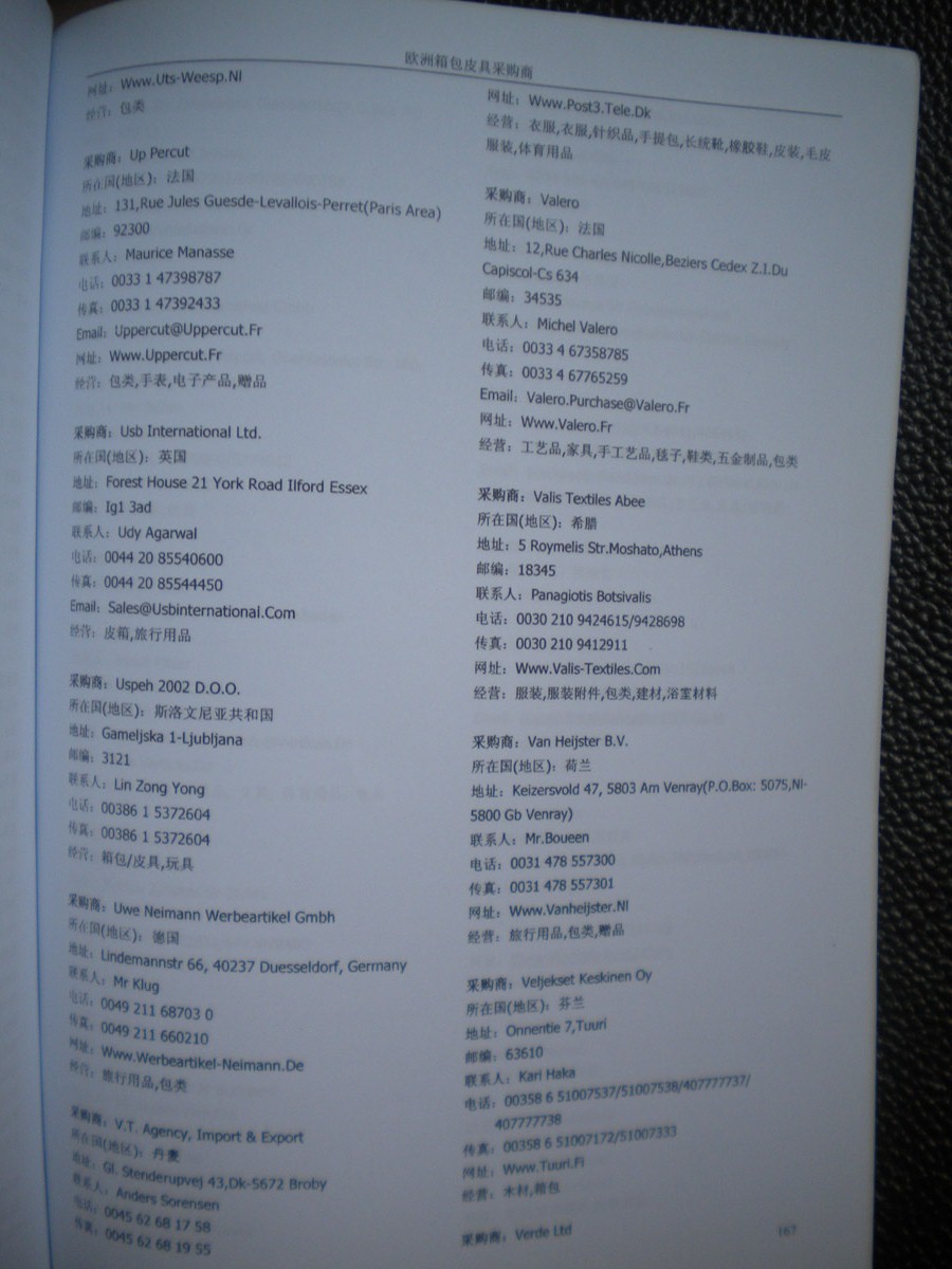 資料如何收集:在各大展會上,我們免費向到會采購商提供他們需要的最新產(chǎn)品雜志和光盤,我們也同時向他們派發(fā)帶有我們網(wǎng)站LOGO的精美禮品,這些最新的中國供應(yīng)商的信息,對他們很有幫助,采購商會留下他們的名片,填寫詳細(xì)的產(chǎn)品求購信息,以期望得到更多的供應(yīng)商的信息。收集到這些第一手的原始外商資料后,我們客戶服務(wù)中心立刻將名片掃描作成圖片,將產(chǎn)品采購信息做成數(shù)據(jù)庫,將采購商資料按行業(yè)不同,匯編成冊,出版發(fā)行《全球采購商黃頁》系列。