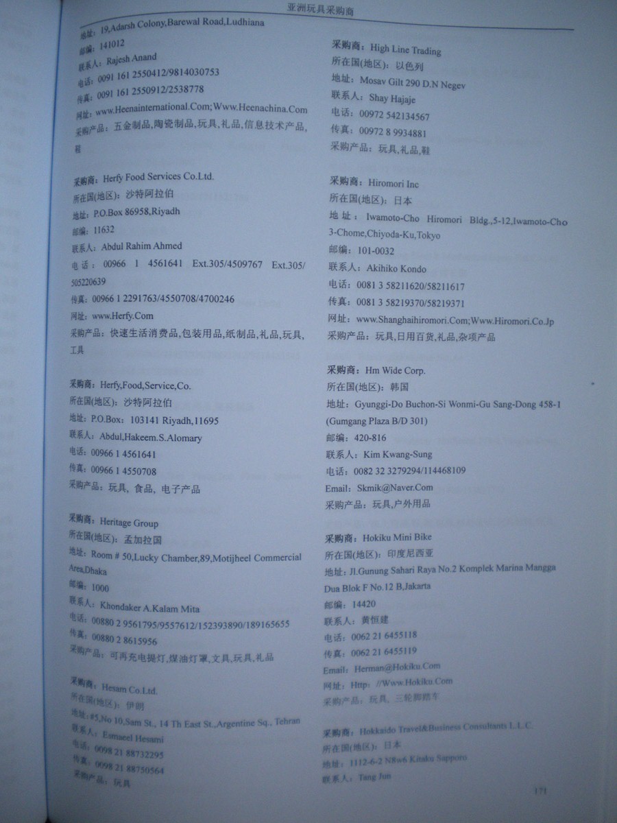 資料如何收集:在各大展會(huì)上,我們免費(fèi)向到會(huì)采購(gòu)商提供他們需要的最新產(chǎn)品雜志和光盤(pán),我們也同時(shí)向他們派發(fā)帶有我們網(wǎng)站LOGO的精美禮品,這些最新的中國(guó)供應(yīng)商的信息,對(duì)他們很有幫助,采購(gòu)商會(huì)留下他們的名片,填寫(xiě)詳細(xì)的產(chǎn)品求購(gòu)信息,以期望得到更多的供應(yīng)商的信息。收集到這些第一手的原始外商資料后,我們客戶(hù)服務(wù)中心立刻將名片掃描作成圖片,將產(chǎn)品采購(gòu)信息做成數(shù)據(jù)庫(kù),將采購(gòu)商資料按行業(yè)不同,匯編成冊(cè),出版發(fā)行《全球采購(gòu)商黃頁(yè)》系列。