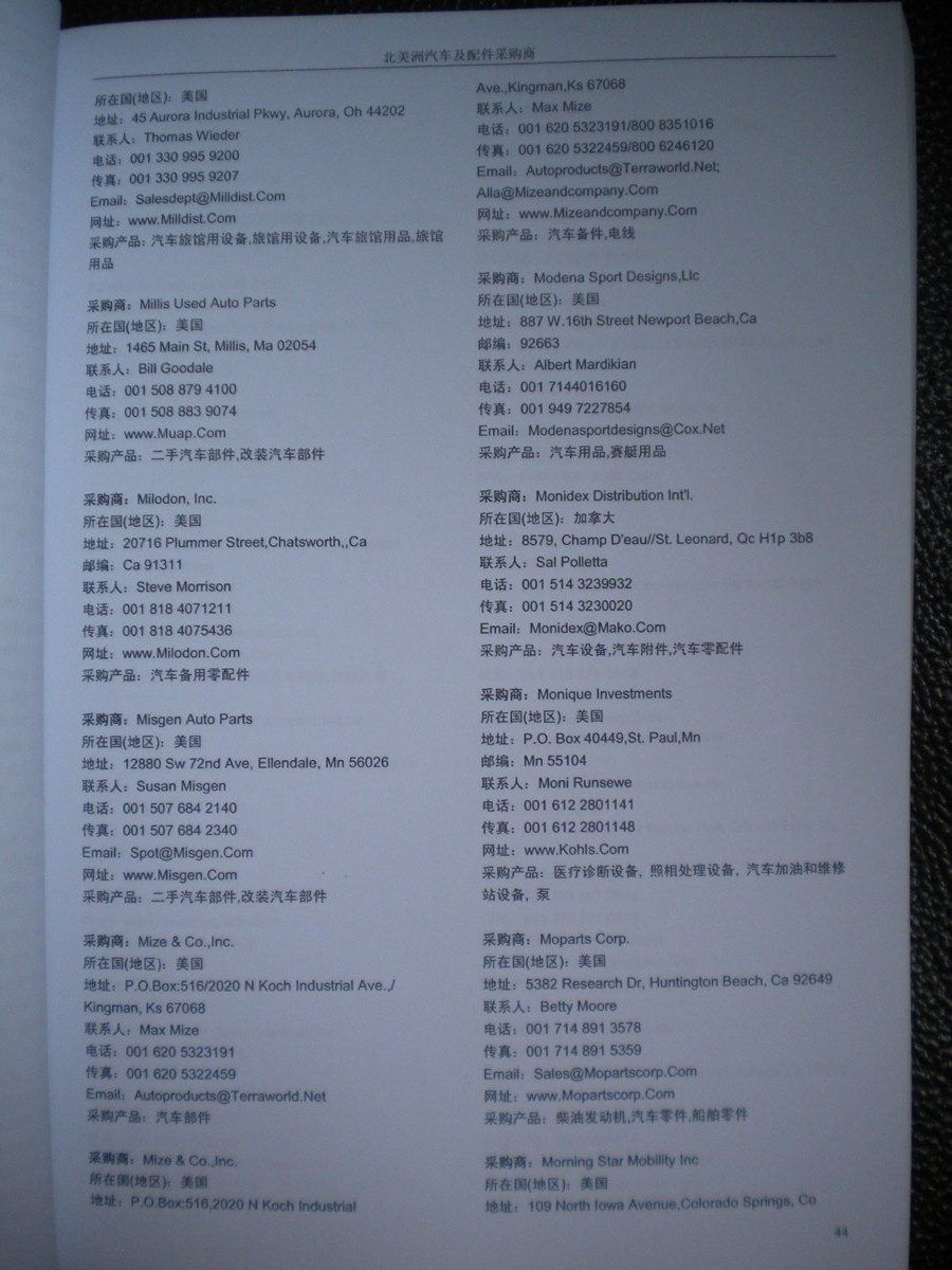 書刊簡介:《全球采商黃頁》系列叢書是由全球最活躍的專業(yè)買家及重要國際性展會的到會采購商名片信息匯編而成,包含三十多個行業(yè)分類,匯集了各類產(chǎn)品的買家信息。其中收錄的每家采購商信息均是我們通過與買家面對面的登記整理收集而成,采購意向明確,針對性強。為了確保信息的準確性和時效性,我們定期進行跟進、回訪、補充及更新工作。每家采購商信息包括國別、公司名稱、聯(lián)系人、地址、電話、傳真、電郵、網(wǎng)址、采購產(chǎn)品等詳細內(nèi)容,每冊《黃頁》約有兩千家左右的采購商信息。在當前國際出口形勢日趨嚴峻的環(huán)境下,如何降低成本開拓國際市場,是每個出口企業(yè)急需尋找的答案,我們相信通過我們10多年的外貿(mào)信息服務(wù)經(jīng)驗和最新的國際買家資源服務(wù),將會為您拓展全球市場提供最直接有效的幫助。專業(yè)對口的買家信息一定會幫助貴公司打開更廣闊的外貿(mào)市場!