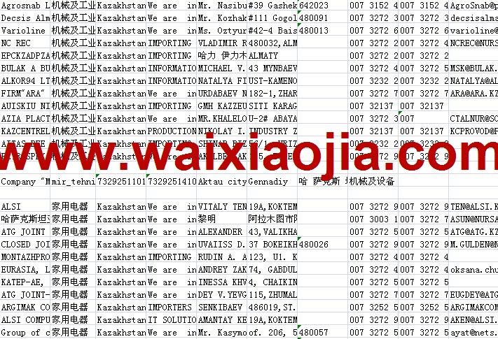 哈薩克斯坦采購(gòu)商名單數(shù)據(jù)為Excel格式,信息可任意修改、復(fù)制、打印、導(dǎo)出及導(dǎo)入到傳真、郵件群發(fā)等軟件中,無(wú)任何限制。