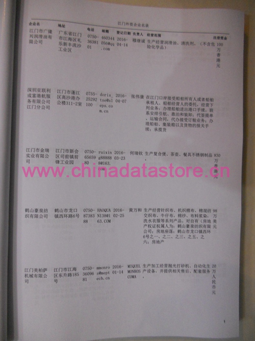 | 某個(gè)國(guó)別或地區(qū)投資企業(yè)黃頁(yè) | 如江門日企黃頁(yè)、江門臺(tái)企名單 | 80% | RMB:300元 |