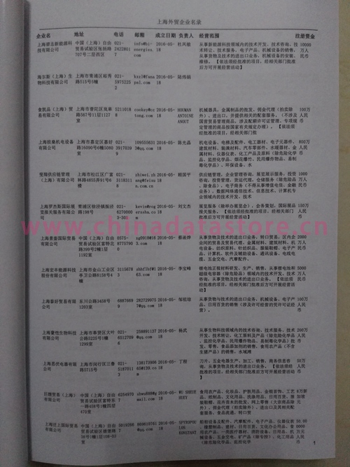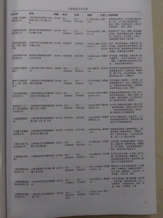 2021版最新上海企業(yè)黃頁包括《上海制造企業(yè)黃頁》、《上海貿(mào)易企業(yè)黃頁》、《上海民營企業(yè)黃頁》、《上海外資企業(yè)黃頁》、《上海外貿(mào)企業(yè)黃頁》共五冊,現(xiàn)優(yōu)惠價:280元/冊。每冊內(nèi)容包括:單位名稱、地址、郵編、電話、傳真、郵箱、經(jīng)營范圍等;上海企業(yè)黃頁涵蓋了近幾年來最新成立的、有一定規(guī)模的企業(yè),具有非常高的營銷價值。有了這套黃頁開展業(yè)務(wù)也有了針對性,也省去了盲目去尋找客戶名單而浪費(fèi)的時間了,工作效率也會有很大的提高。歡迎需要上海企業(yè)黃頁的朋友及時聯(lián)系我們!