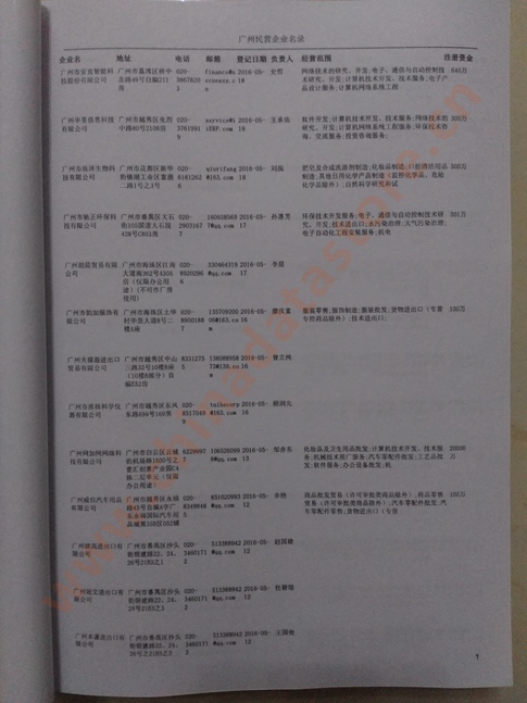 2021版最新廣州企業(yè)黃頁(yè)包括《廣州制造企業(yè)黃頁(yè)》、《廣州貿(mào)易企業(yè)黃頁(yè)》、《廣州民營(yíng)企業(yè)黃頁(yè)》、《廣州外資企業(yè)黃頁(yè)》、《廣州外貿(mào)企業(yè)黃頁(yè)》共五冊(cè),現(xiàn)優(yōu)惠價(jià):280元/冊(cè)。每?jī)?cè)內(nèi)容包括:?jiǎn)挝幻Q、地址、郵編、電話、傳真、郵箱、經(jīng)營(yíng)范圍等;廣州企業(yè)黃頁(yè)涵蓋了近幾年來(lái)最新成立的、有一定規(guī)模的企業(yè),具有非常高的營(yíng)銷價(jià)值。有了這套黃頁(yè)開(kāi)展業(yè)務(wù)也有了針對(duì)性,也省去了盲目去尋找客戶名單而浪費(fèi)的時(shí)間了,工作效率也會(huì)有很大的提高。歡迎需要廣州企業(yè)黃頁(yè)的朋友及時(shí)聯(lián)系我們!