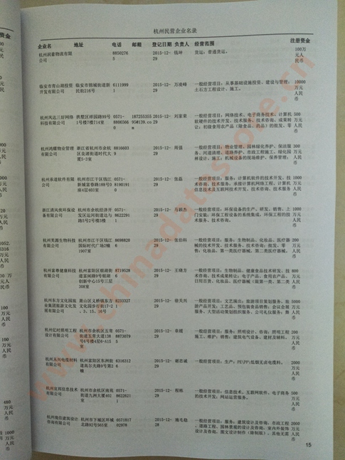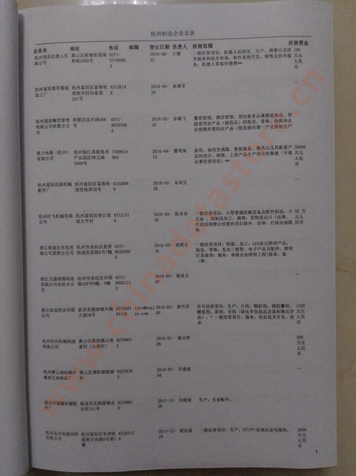 2021版最新杭州企業(yè)黃頁包括《杭州制造企業(yè)黃頁》、《杭州貿(mào)易企業(yè)黃頁》、《杭州民營企業(yè)黃頁》、《杭州外資企業(yè)黃頁》、《杭州外貿(mào)企業(yè)黃頁》共五冊,現(xiàn)優(yōu)惠價:280元/冊。每冊內(nèi)容包括:單位名稱、地址、郵編、電話、傳真、郵箱、經(jīng)營范圍等;杭州企業(yè)黃頁涵蓋了近幾年來最新成立的、有一定規(guī)模的企業(yè),具有非常高的營銷價值。有了這套黃頁開展業(yè)務(wù)也有了針對性,也省去了盲目去尋找客戶名單而浪費(fèi)的時間了,工作效率也會有很大的提高。歡迎需要杭州企業(yè)黃頁的朋友及時聯(lián)系我們!