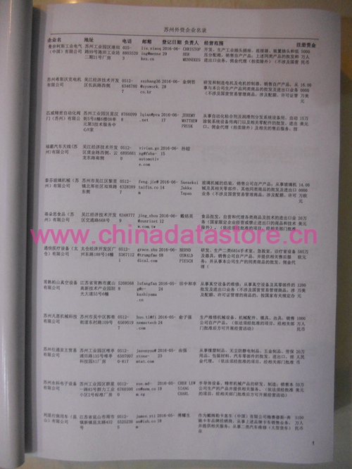 2021版最新蘇州企業(yè)黃頁包括《蘇州制造企業(yè)黃頁》、《蘇州貿(mào)易企業(yè)黃頁》、《蘇州民營企業(yè)黃頁》、《蘇州外資企業(yè)黃頁》、《蘇州外貿(mào)企業(yè)黃頁》共五冊,現(xiàn)優(yōu)惠價:280元/冊。每冊內(nèi)容包括:單位名稱、地址、郵編、電話、傳真、郵箱、經(jīng)營范圍等;蘇州企業(yè)黃頁涵蓋了近幾年來最新成立的、有一定規(guī)模的企業(yè),具有非常高的營銷價值。有了這套黃頁開展業(yè)務(wù)也有了針對性,也省去了盲目去尋找客戶名單而浪費的時間了,工作效率也會有很大的提高。歡迎需要蘇州企業(yè)黃頁的朋友及時聯(lián)系我們!