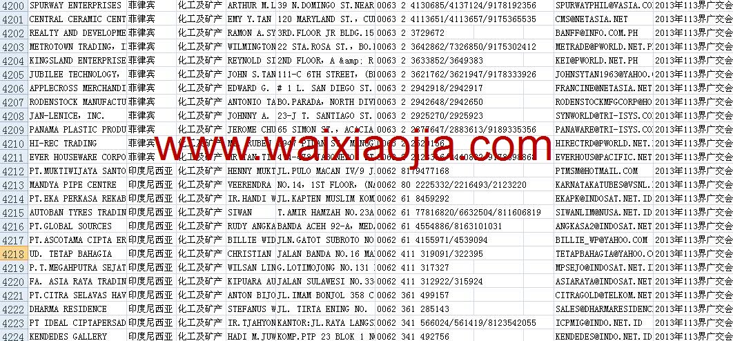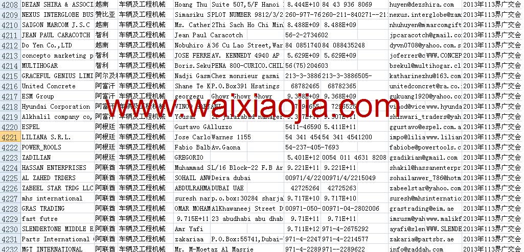 113屆廣交會采購商名單數(shù)據(jù)為Excel格式,信息可任意修改、復(fù)制、打印、導(dǎo)出及導(dǎo)入到傳真、郵件群發(fā)等軟件中,無任何限制。