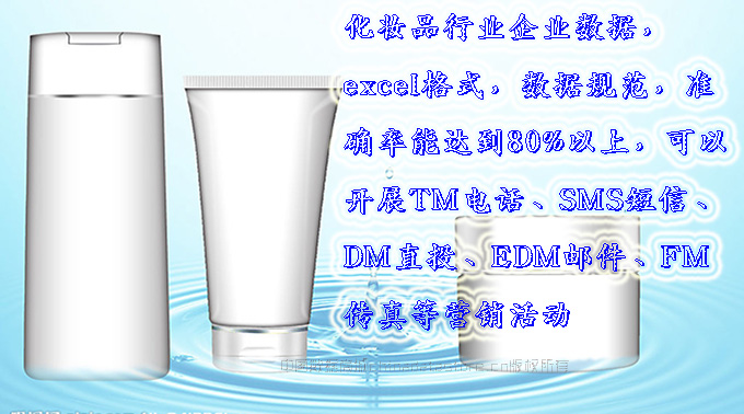 最新化妝品生產(chǎn)與貿(mào)易企業(yè)黃頁(yè)數(shù)據(jù)更新日期2025年12月最新,全國(guó)化妝品企業(yè)黃頁(yè)共66000條,都是具有一定規(guī)模的化妝品行業(yè)的注冊(cè)實(shí)體企業(yè),數(shù)據(jù)準(zhǔn)確率高,是您開(kāi)展各項(xiàng)營(yíng)銷活動(dòng)的必備資料。企業(yè)名單包括:企業(yè)名稱、地址、電話(以上必有,以下選有)、傳真、郵箱、登記日期、經(jīng)營(yíng)范圍、注冊(cè)資金等信息。化妝品企業(yè)黃頁(yè)數(shù)據(jù)為Excel格式,信息可任意修改、復(fù)制、打印、導(dǎo)出及導(dǎo)入到傳真、郵件群發(fā)等軟件中,無(wú)任何限制。