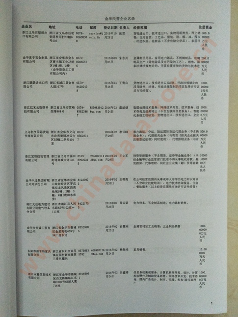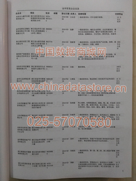 2021版最新金華企業(yè)黃頁包括《金華制造企業(yè)黃頁》、《金華貿(mào)易企業(yè)黃頁》、《金華民營(yíng)企業(yè)黃頁》、《金華外資企業(yè)黃頁》、《金華外貿(mào)企業(yè)黃頁》共五冊(cè),現(xiàn)優(yōu)惠價(jià):280元/冊(cè)。每?jī)?cè)內(nèi)容包括:?jiǎn)挝幻Q、地址、郵編、電話、傳真、郵箱、經(jīng)營(yíng)范圍等;金華企業(yè)黃頁涵蓋了近幾年來最新成立的、有一定規(guī)模的企業(yè),具有非常高的營(yíng)銷價(jià)值。有了這套黃頁開展業(yè)務(wù)也有了針對(duì)性,也省去了盲目去尋找客戶名單而浪費(fèi)的時(shí)間了,工作效率也會(huì)有很大的提高。歡迎需要金華企業(yè)黃頁的朋友及時(shí)聯(lián)系我們!