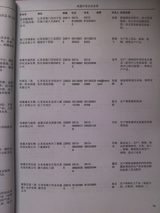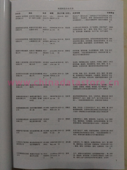 2021版最新南通企業(yè)黃頁包括《南通制造企業(yè)黃頁》、《南通貿(mào)易企業(yè)黃頁》、《南通民營企業(yè)黃頁》、《南通外資企業(yè)黃頁》、《南通外貿(mào)企業(yè)黃頁》共五冊,現(xiàn)優(yōu)惠價:280元/冊。每冊內(nèi)容包括:單位名稱、地址、郵編、電話、傳真、郵箱、經(jīng)營范圍等;南通企業(yè)黃頁涵蓋了近幾年來最新成立的、有一定規(guī)模的企業(yè),具有非常高的營銷價值。有了這套黃頁開展業(yè)務(wù)也有了針對性,也省去了盲目去尋找客戶名單而浪費的時間了,工作效率也會有很大的提高。歡迎需要南通企業(yè)黃頁的朋友及時聯(lián)系我們!