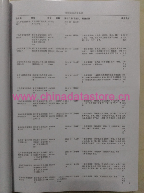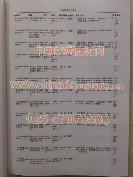 2021版最新義烏企業(yè)黃頁包括《義烏制造企業(yè)黃頁》、《義烏貿(mào)易企業(yè)黃頁》、《義烏民營企業(yè)黃頁》、《義烏外資企業(yè)黃頁》、《義烏外貿(mào)企業(yè)黃頁》共五冊(cè),現(xiàn)優(yōu)惠價(jià):280元/冊(cè)。每冊(cè)內(nèi)容包括:單位名稱、地址、郵編、電話、傳真、郵箱、經(jīng)營范圍等;義烏企業(yè)黃頁涵蓋了近幾年來最新成立的、有一定規(guī)模的企業(yè),具有非常高的營銷價(jià)值。有了這套黃頁開展業(yè)務(wù)也有了針對(duì)性,也省去了盲目去尋找客戶名單而浪費(fèi)的時(shí)間了,工作效率也會(huì)有很大的提高。歡迎需要義烏企業(yè)黃頁的朋友及時(shí)聯(lián)系我們!