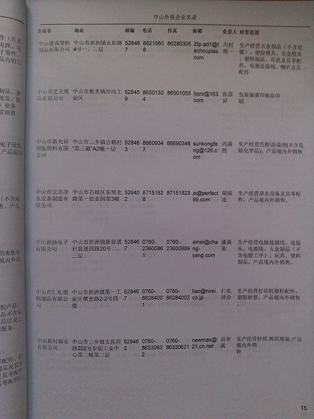 2021版最新中山企業(yè)黃頁包括《中山制造企業(yè)黃頁》、《中山貿(mào)易企業(yè)黃頁》、《中山民營(yíng)企業(yè)黃頁》、《中山外資企業(yè)黃頁》、《中山外貿(mào)企業(yè)黃頁》共五冊(cè),現(xiàn)優(yōu)惠價(jià):280元/冊(cè)。每?jī)?cè)內(nèi)容包括:?jiǎn)挝幻Q、地址、郵編、電話、傳真、郵箱、經(jīng)營(yíng)范圍等;中山企業(yè)黃頁涵蓋了近幾年來最新成立的、有一定規(guī)模的企業(yè),具有非常高的營(yíng)銷價(jià)值。有了這套黃頁開展業(yè)務(wù)也有了針對(duì)性,也省去了盲目去尋找客戶名單而浪費(fèi)的時(shí)間了,工作效率也會(huì)有很大的提高。歡迎需要中山企業(yè)黃頁的朋友及時(shí)聯(lián)系我們!