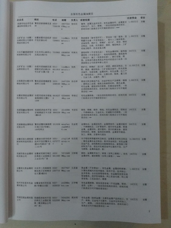 | 全國有色金屬企業(yè)黃頁 | 全國所有有色金屬企業(yè)黃頁 | 80% - 90% | 2000元 | 附贈上下冊有色金屬紙質(zhì)印刷品 |