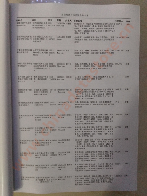 2025年新版中國(guó)燈具燈飾采購(gòu)企業(yè)黃頁,收錄了全國(guó)各地經(jīng)營(yíng)范圍涉及燈具燈飾產(chǎn)品的貿(mào)易企業(yè),這些都是頗具實(shí)力的燈具燈飾產(chǎn)品的中國(guó)采購(gòu)商。黃頁內(nèi)容包含:企業(yè)名稱、地址、電話、傳真、郵箱、經(jīng)營(yíng)范圍、省份、注冊(cè)資金等信息。該套黃頁包含一個(gè)黃頁光碟加一冊(cè)紙質(zhì)書刊,全國(guó)價(jià)格:1500元,省/直轄市價(jià)格:400元,城市價(jià)格:200元,共收錄了全國(guó)各地大概22857(統(tǒng)計(jì)日期:2018.1)家燈具燈飾產(chǎn)品采購(gòu)企業(yè)。黃頁光碟中是EXCEL格式,信息可任意修改、復(fù)制、打印、導(dǎo)出及導(dǎo)入到傳真、郵件群發(fā)等軟件中,無任何限制。