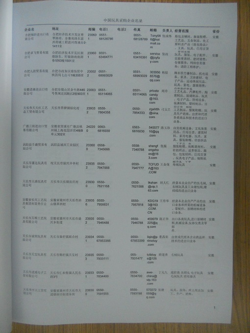 2025年新版中國(guó)玩具采購(gòu)企業(yè)黃頁,收錄了全國(guó)各地經(jīng)營(yíng)范圍涉及玩具產(chǎn)品的貿(mào)易企業(yè),這些都是頗具實(shí)力的玩具產(chǎn)品的中國(guó)采購(gòu)商。黃頁內(nèi)容包含:企業(yè)名稱、地址、電話、傳真、郵箱、經(jīng)營(yíng)范圍、省份、注冊(cè)資金等信息。該套黃頁包含一個(gè)黃頁光碟加一冊(cè)紙質(zhì)書刊,全國(guó)價(jià)格:1500元,省/直轄市價(jià)格:400元,城市價(jià)格:200元,共收錄了全國(guó)各地大概1852(統(tǒng)計(jì)日期:2018.1)家玩具產(chǎn)品采購(gòu)企業(yè)。黃頁光碟中是EXCEL格式,信息可任意修改、復(fù)制、打印、導(dǎo)出及導(dǎo)入到傳真、郵件群發(fā)等軟件中,無任何限制。
