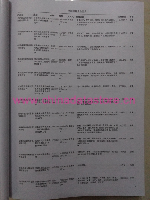 | 某省或直轄市 | 如上海、浙江飼料企業(yè)名單 | 80% - 90% | 600元 | 附贈一冊飼料紙質印刷品 |