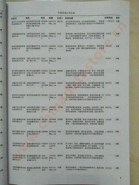 | 某省或直轄市 | 如上海、浙江咨詢公司企業(yè)名單 | 80% - 90% | 600元 | 附贈一冊咨詢公司紙質(zhì)印刷品 |