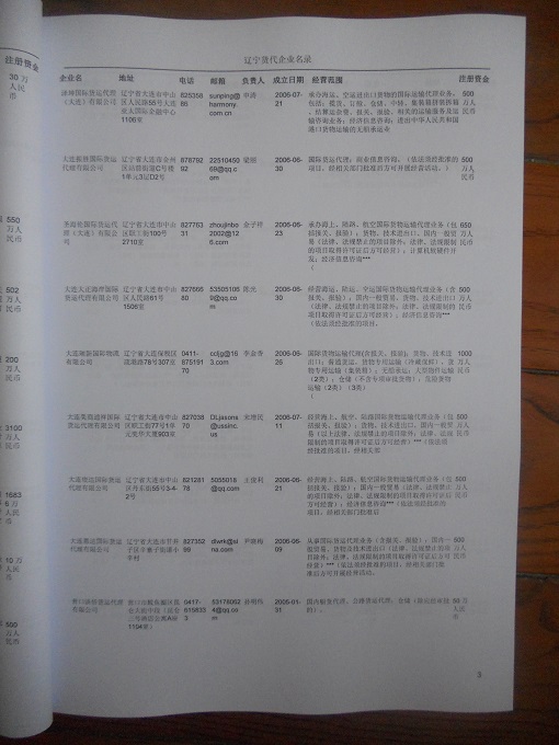 遼寧貨運(yùn)公司黃頁包括:企業(yè)名稱、負(fù)責(zé)人聯(lián)系方式、企業(yè)電話、傳真、Email、經(jīng)營范圍、地址、郵編等信息。