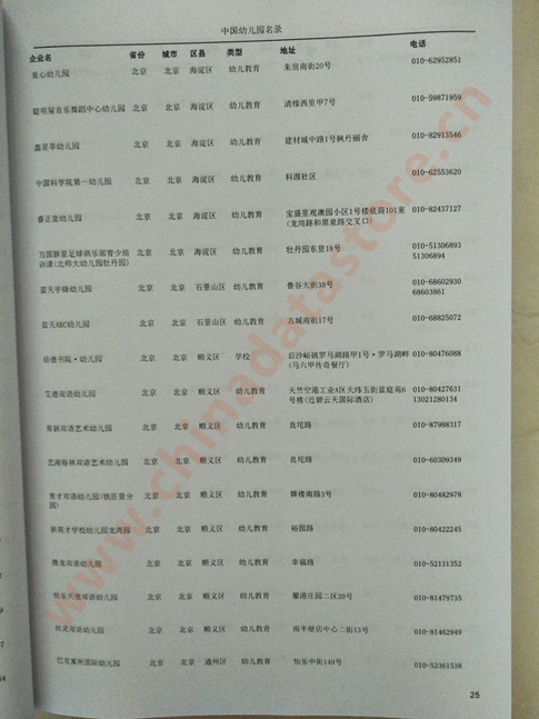 | 全國幼兒園黃頁 | 全國幼兒園黃頁 | 80% - 90% | 700元 | 附贈(zèng)一冊全國幼兒園名單印刷品 |