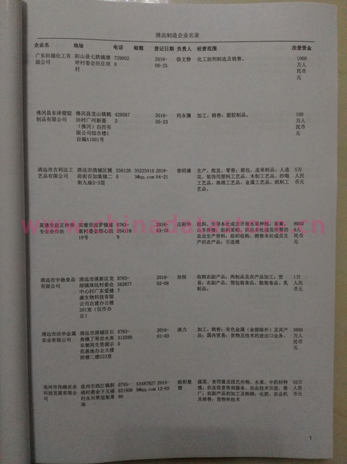 2021版最新清遠企業(yè)黃頁包括《清遠制造企業(yè)黃頁》、《清遠民營企業(yè)黃頁》,現(xiàn)優(yōu)惠價:280元/冊。每冊內(nèi)容包括:單位名稱、地址、郵編、電話、傳真、郵箱、經(jīng)營范圍等;清遠企業(yè)黃頁涵蓋了近幾年來最新成立的、有一定規(guī)模的企業(yè),具有非常高的營銷價值。有了這套黃頁開展業(yè)務(wù)也有了針對性,也省去了盲目去尋找客戶名單而浪費的時間了,工作效率也會有很大的提高。歡迎需要清遠企業(yè)黃頁的朋友及時聯(lián)系我們!