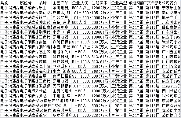 117屆廣交會參展商企業(yè)黃頁共30138條記錄(部分企業(yè)參加不止一期,實際數(shù)量2萬家左右)。售價200元,或聯(lián)系網(wǎng)站客服執(zhí)行任務(wù)免費(fèi)獲取