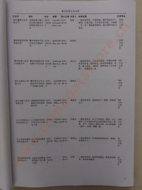 2021版最新衢州企業(yè)黃頁(yè)包括《衢州制造企業(yè)黃頁(yè)》、《衢州民營(yíng)企業(yè)黃頁(yè)》,現(xiàn)優(yōu)惠價(jià):280元/冊(cè)。每?jī)?cè)內(nèi)容包括:?jiǎn)挝幻Q、地址、郵編、電話、傳真、郵箱、經(jīng)營(yíng)范圍等;衢州企業(yè)黃頁(yè)涵蓋了近幾年來(lái)最新成立的、有一定規(guī)模的企業(yè),具有非常高的營(yíng)銷價(jià)值。有了這套黃頁(yè)開(kāi)展業(yè)務(wù)也有了針對(duì)性,也省去了盲目去尋找客戶名單而浪費(fèi)的時(shí)間了,工作效率也會(huì)有很大的提高。歡迎需要衢州企業(yè)黃頁(yè)的朋友及時(shí)聯(lián)系我們!