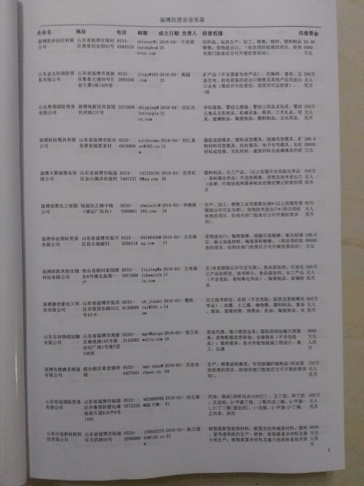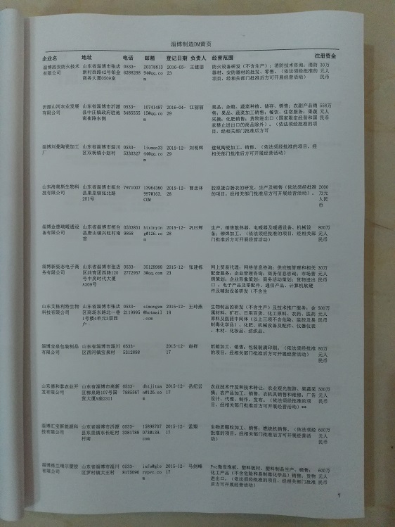 2021版最新淄博企業(yè)黃頁包括《淄博制造企業(yè)黃頁》、《淄博民營企業(yè)黃頁》,現(xiàn)優(yōu)惠價(jià):280元/冊。每冊內(nèi)容包括:單位名稱、地址、郵編、電話、傳真、郵箱、經(jīng)營范圍等;淄博企業(yè)黃頁涵蓋了近幾年來最新成立的、有一定規(guī)模的企業(yè),具有非常高的營銷價(jià)值。有了這套黃頁開展業(yè)務(wù)也有了針對性,也省去了盲目去尋找客戶名單而浪費(fèi)的時(shí)間了,工作效率也會(huì)有很大的提高。歡迎需要淄博企業(yè)黃頁的朋友及時(shí)聯(lián)系我們!