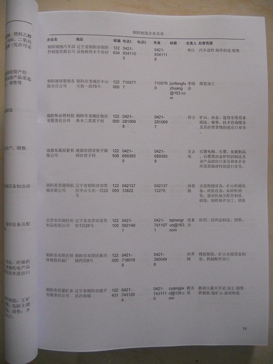 2021版最新朝陽企業(yè)黃頁包括《朝陽制造企業(yè)黃頁》、《朝陽民營企業(yè)黃頁》,現(xiàn)優(yōu)惠價:280元/冊。每冊內(nèi)容包括:單位名稱、地址、郵編、電話、傳真、郵箱、經(jīng)營范圍等;朝陽企業(yè)黃頁涵蓋了近幾年來最新成立的、有一定規(guī)模的企業(yè),具有非常高的營銷價值。有了這套黃頁開展業(yè)務(wù)也有了針對性,也省去了盲目去尋找客戶名單而浪費的時間了,工作效率也會有很大的提高。歡迎需要朝陽企業(yè)黃頁的朋友及時聯(lián)系我們!