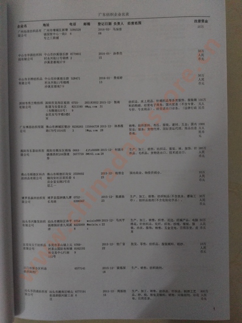 | 廣東紡織企業(yè)黃頁 | 所有廣東紡織企業(yè)黃頁 | 80% - 90% | 600元 | 附贈一冊廣東紡織紙質(zhì)印刷品 |