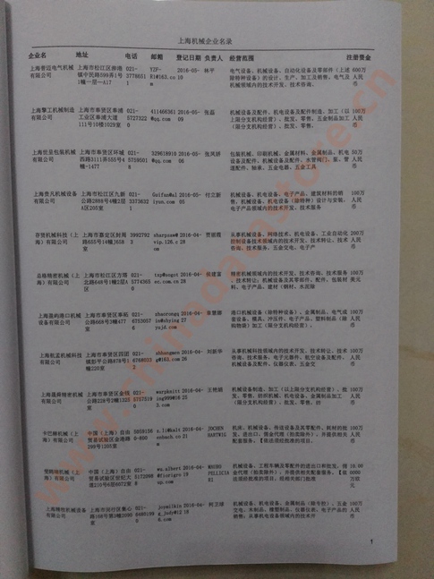 最新上海機械生產(chǎn)與貿(mào)易企業(yè)黃頁數(shù)據(jù)更新日期2025年12月最新,全國上海機械企業(yè)黃頁,都是具有一定規(guī)模的上海機械行業(yè)的注冊實體企業(yè),數(shù)據(jù)準(zhǔn)確率高,是您開展各項營銷活動的必備資料。企業(yè)名單包括:企業(yè)名稱、地址、電話(以上必有,以下選有)、傳真、郵箱、登記日期、經(jīng)營范圍、注冊資金等信息。上海機械企業(yè)黃頁數(shù)據(jù)為Excel格式,信息可任意修改、復(fù)制、打印、導(dǎo)出及導(dǎo)入到傳真、郵件群發(fā)等軟件中,無任何限制。