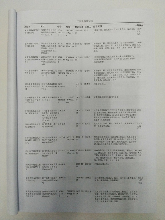 | 廣東建筑工程企業(yè)黃頁(yè) | 所有廣東建筑工程企業(yè)黃頁(yè) | 80% - 90% | 600元 | 附贈(zèng)一冊(cè)廣東建筑工程紙質(zhì)印刷品 |