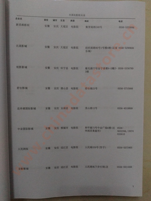 | 全國電影院黃頁 | 全國電影院黃頁 | 80% - 90% | 1000元 | 附贈(zèng)一冊電影院紙質(zhì)印刷品 |