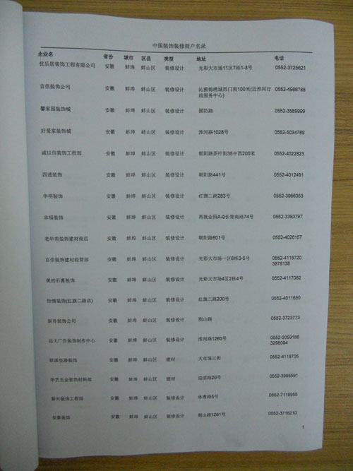 | 某省或直轄市 | 如上海、浙江裝修商戶名單 | 80% - 90% | 600元 | 附贈一冊裝修商戶紙質(zhì)印刷品 |