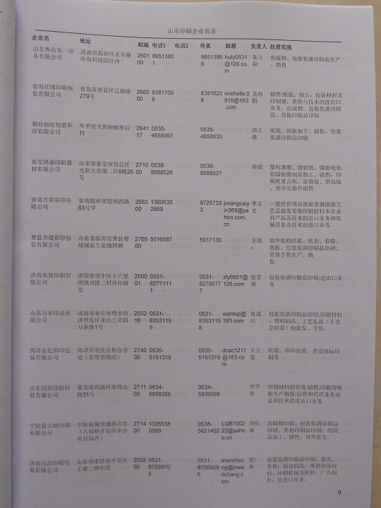 | 山東印刷企業(yè)黃頁 | 所有山東印刷企業(yè)黃頁 | 80% - 90% | 600元 | 附贈一冊山東印刷紙質(zhì)印刷品 |