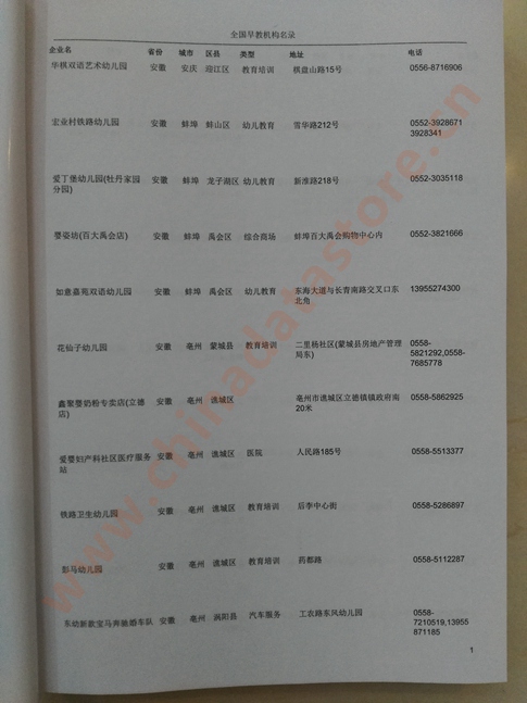 | 全國早教機構黃頁 | 全國早教機構黃頁 | 80% - 90% | 3000元 | 附贈上下冊早教機構紙質印刷品 |