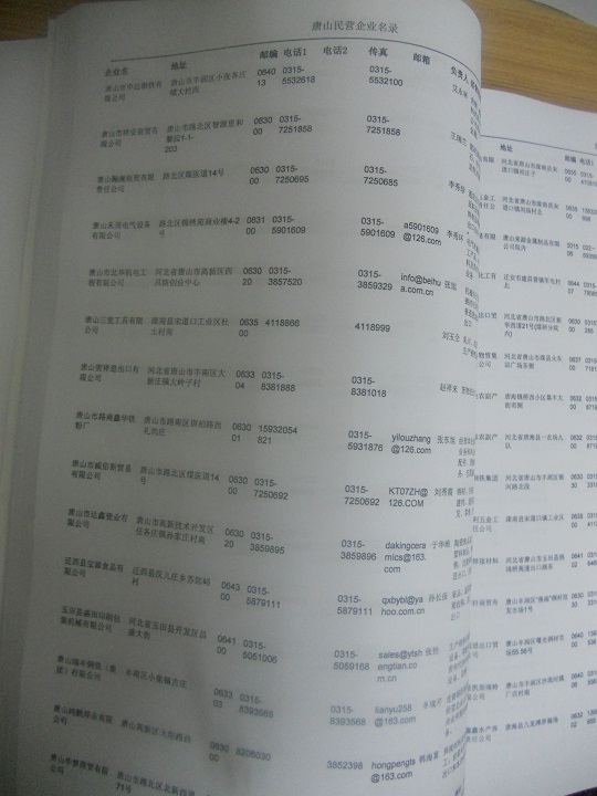 2021版最新唐山企業(yè)黃頁包括《唐山制造企業(yè)黃頁》、《唐山民營企業(yè)黃頁》,現優(yōu)惠價:280元/冊。每冊內容包括:單位名稱、地址、郵編、電話、傳真、郵箱、經營范圍等;唐山企業(yè)黃頁涵蓋了近幾年來最新成立的、有一定規(guī)模的企業(yè),具有非常高的營銷價值。有了這套黃頁開展業(yè)務也有了針對性,也省去了盲目去尋找客戶名單而浪費的時間了,工作效率也會有很大的提高。歡迎需要唐山企業(yè)黃頁的朋友及時聯系我們!