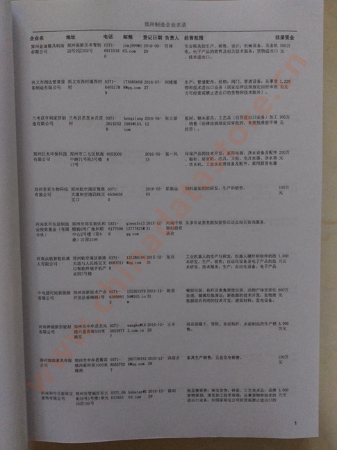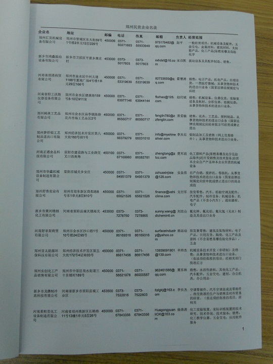 2021版最新鄭州企業(yè)黃頁(yè)包括《鄭州制造企業(yè)黃頁(yè)》、《鄭州民營(yíng)企業(yè)黃頁(yè)》,現(xiàn)優(yōu)惠價(jià):280元/冊(cè)。每?jī)?cè)內(nèi)容包括:?jiǎn)挝幻Q、地址、郵編、電話、傳真、郵箱、經(jīng)營(yíng)范圍等;鄭州企業(yè)黃頁(yè)涵蓋了近幾年來最新成立的、有一定規(guī)模的企業(yè),具有非常高的營(yíng)銷價(jià)值。有了這套黃頁(yè)開展業(yè)務(wù)也有了針對(duì)性,也省去了盲目去尋找客戶名單而浪費(fèi)的時(shí)間了,工作效率也會(huì)有很大的提高。歡迎需要鄭州企業(yè)黃頁(yè)的朋友及時(shí)聯(lián)系我們!
