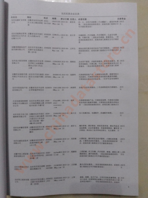 2021版最新安慶企業(yè)黃頁包括《安慶制造企業(yè)黃頁》、《安慶民營企業(yè)黃頁》,現(xiàn)優(yōu)惠價:280元/冊。每冊內(nèi)容包括:單位名稱、地址、郵編、電話、傳真、郵箱、經(jīng)營范圍等;安慶企業(yè)黃頁涵蓋了近幾年來最新成立的、有一定規(guī)模的企業(yè),具有非常高的營銷價值。有了這套黃頁開展業(yè)務(wù)也有了針對性,也省去了盲目去尋找客戶名單而浪費的時間了,工作效率也會有很大的提高。歡迎需要安慶企業(yè)黃頁的朋友及時聯(lián)系我們!