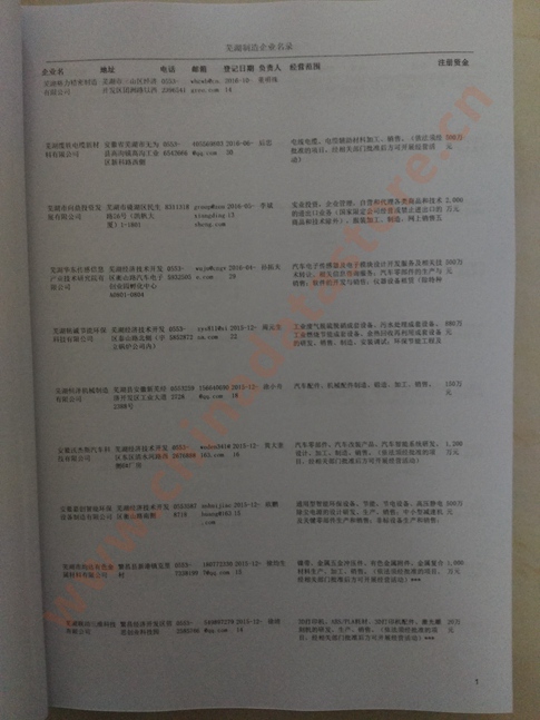 2021版最新蕪湖企業(yè)黃頁包括《蕪湖制造企業(yè)黃頁》、《蕪湖民營企業(yè)黃頁》,現(xiàn)優(yōu)惠價:280元/冊。每冊內(nèi)容包括:單位名稱、地址、郵編、電話、傳真、郵箱、經(jīng)營范圍等;蕪湖企業(yè)黃頁涵蓋了近幾年來最新成立的、有一定規(guī)模的企業(yè),具有非常高的營銷價值。有了這套黃頁開展業(yè)務也有了針對性,也省去了盲目去尋找客戶名單而浪費的時間了,工作效率也會有很大的提高。歡迎需要蕪湖企業(yè)黃頁的朋友及時聯(lián)系我們!