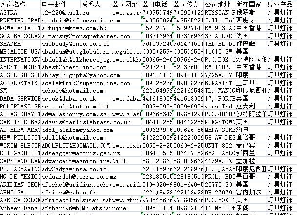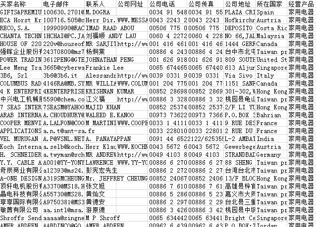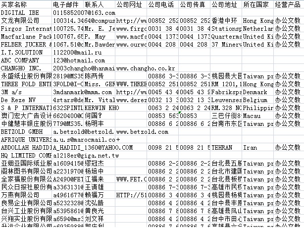 117屆廣交會采購商名單數(shù)據(jù)為Excel格式,信息可任意修改、復(fù)制、打印、導(dǎo)出及導(dǎo)入到傳真、郵件群發(fā)等軟件中,無任何限制。