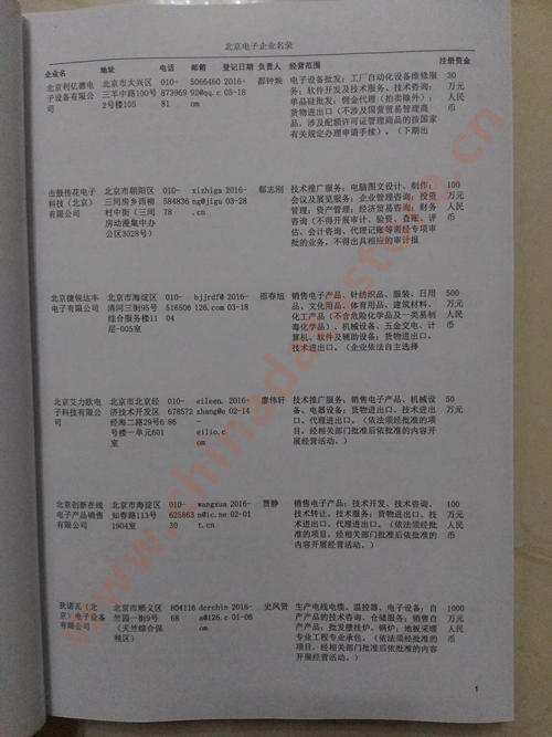最新北京電子生產(chǎn)與貿(mào)易企業(yè)黃頁數(shù)據(jù)更新日期2025年12月最新,全國北京電子企業(yè)黃頁,都是具有一定規(guī)模的北京電子行業(yè)的注冊實(shí)體企業(yè),數(shù)據(jù)準(zhǔn)確率高,是您開展各項(xiàng)營銷活動(dòng)的必備資料。企業(yè)名單包括:企業(yè)名稱、地址、電話(以上必有,以下選有)、傳真、郵箱、登記日期、經(jīng)營范圍、注冊資金等信息。北京電子企業(yè)黃頁數(shù)據(jù)為Excel格式,信息可任意修改、復(fù)制、打印、導(dǎo)出及導(dǎo)入到傳真、郵件群發(fā)等軟件中,無任何限制。
