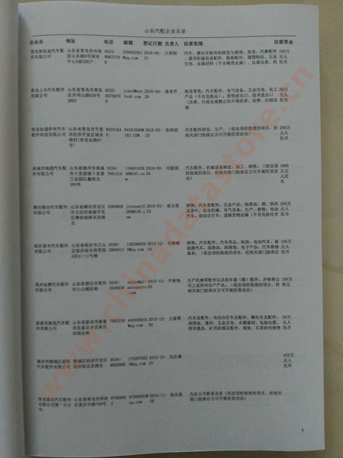 最新山東汽配生產(chǎn)與貿(mào)易企業(yè)黃頁數(shù)據(jù)更新日期2025年12月最新,山東汽配企業(yè)黃頁,都是具有一定規(guī)模的山東汽配行業(yè)的注冊實(shí)體企業(yè),數(shù)據(jù)準(zhǔn)確率高,是您開展各項(xiàng)營銷活動的必備資料。企業(yè)名單包括:企業(yè)名稱、地址、電話(以上必有,以下選有)、傳真、郵箱、登記日期、經(jīng)營范圍、注冊資金等信息。山東汽配企業(yè)黃頁數(shù)據(jù)為Excel格式,信息可任意修改、復(fù)制、打印、導(dǎo)出及導(dǎo)入到傳真、郵件群發(fā)等軟件中,無任何限制。