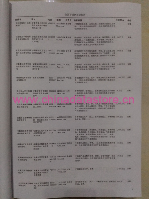 | 某省或直轄市 | 如上海、浙江不銹鋼企業(yè)名單 | 80% - 90% | 600元 | 附贈一冊不銹鋼紙質(zhì)印刷品 |