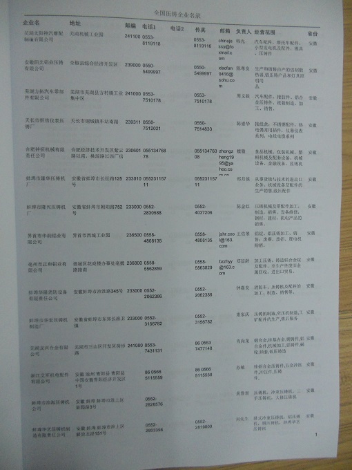 | 某省或直轄市 | 如上海、浙江壓鑄企業(yè)名單 | 80% - 90% | 600元 | 附贈(zèng)一冊(cè)壓鑄紙質(zhì)印刷品 |