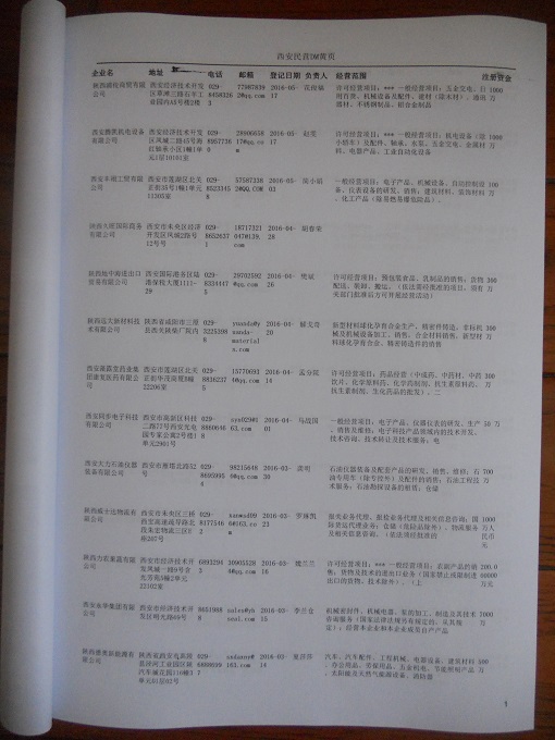2021版最新西安企業(yè)黃頁包括《西安制造企業(yè)黃頁》、《西安民營企業(yè)黃頁》,現(xiàn)優(yōu)惠價(jià):280元/冊(cè)。每?jī)?cè)內(nèi)容包括:?jiǎn)挝幻Q、地址、郵編、電話、傳真、郵箱、經(jīng)營范圍等;西安企業(yè)黃頁涵蓋了近幾年來最新成立的、有一定規(guī)模的企業(yè),具有非常高的營銷價(jià)值。有了這套黃頁開展業(yè)務(wù)也有了針對(duì)性,也省去了盲目去尋找客戶名單而浪費(fèi)的時(shí)間了,工作效率也會(huì)有很大的提高。歡迎需要西安企業(yè)黃頁的朋友及時(shí)聯(lián)系我們!