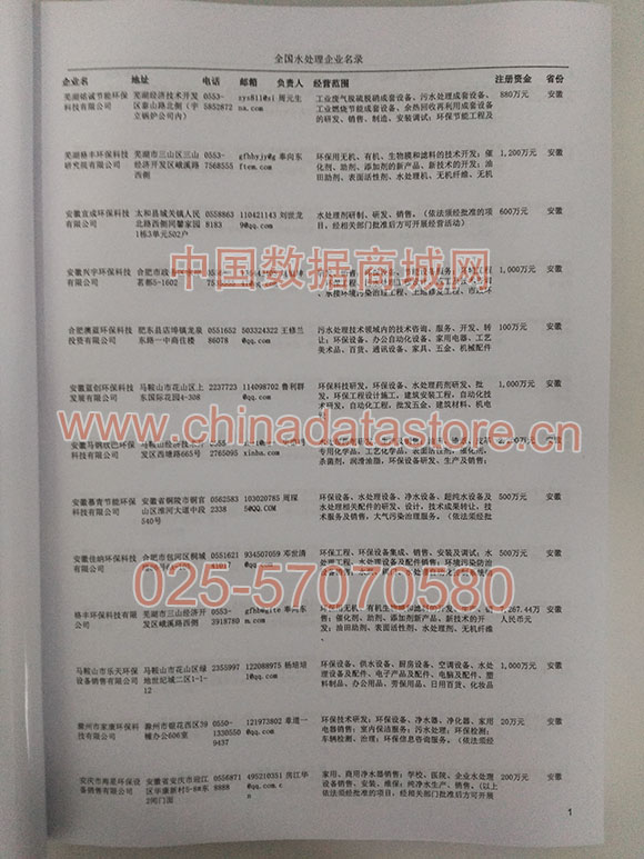 | 某省或直轄市 | 如上海、浙江水處理設(shè)備企業(yè)名單 | 80% - 90% | 600元 | 附贈一冊水處理紙質(zhì)印刷品 |