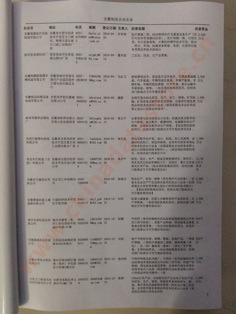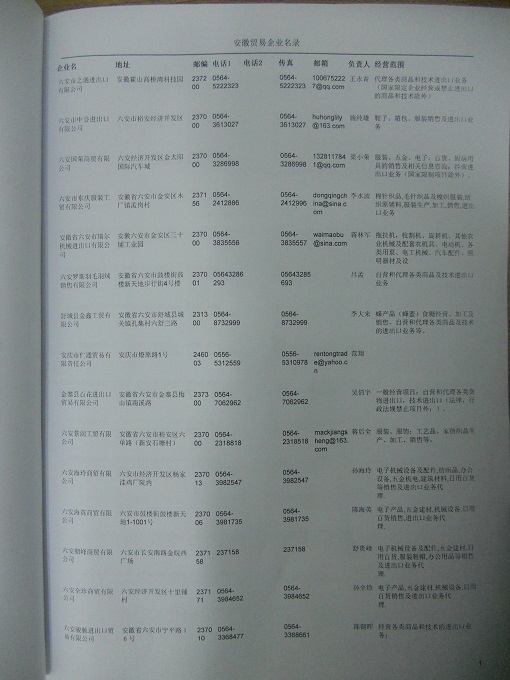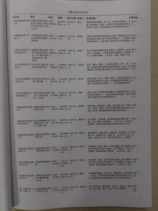 2021版最新安徽企業(yè)黃頁(yè)包括《安徽制造企業(yè)黃頁(yè)》、《安徽貿(mào)易企業(yè)黃頁(yè)》、《安徽民營(yíng)企業(yè)黃頁(yè)》共三冊(cè),優(yōu)惠價(jià):280元/冊(cè)。每?jī)?cè)內(nèi)容包括:?jiǎn)挝幻Q、地址、郵編、電話、傳真、郵箱、經(jīng)營(yíng)范圍等;安徽企業(yè)黃頁(yè)涵蓋了近幾年來(lái)最新成立的、有一定規(guī)模的企業(yè),具有非常高的營(yíng)銷(xiāo)價(jià)值。有了這套黃頁(yè)開(kāi)展業(yè)務(wù)也有了針對(duì)性,也省去了盲目去尋找客戶名單而浪費(fèi)的時(shí)間了,工作效率也會(huì)有很大的提高。歡迎需要安徽企業(yè)黃頁(yè)的朋友及時(shí)聯(lián)系我們!