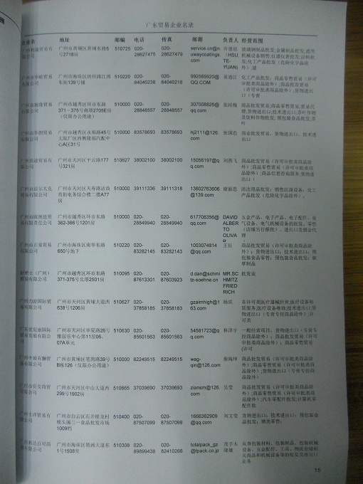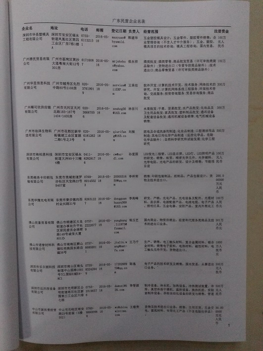 2021版最新廣東企業(yè)黃頁包括《廣東制造企業(yè)黃頁》、《廣東貿(mào)易企業(yè)黃頁》、《廣東民營企業(yè)黃頁》共三冊(cè),優(yōu)惠價(jià):280元/冊(cè)。每?jī)?cè)內(nèi)容包括:?jiǎn)挝幻Q、地址、郵編、電話、傳真、郵箱、經(jīng)營范圍等;廣東企業(yè)黃頁涵蓋了近幾年來最新成立的、有一定規(guī)模的企業(yè),具有非常高的營銷價(jià)值。有了這套黃頁開展業(yè)務(wù)也有了針對(duì)性,也省去了盲目去尋找客戶名單而浪費(fèi)的時(shí)間了,工作效率也會(huì)有很大的提高。歡迎需要廣東企業(yè)黃頁的朋友及時(shí)聯(lián)系我們!