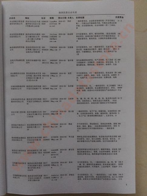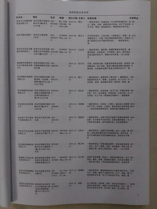 2021版最新陜西企業(yè)黃頁(yè)包括《陜西制造企業(yè)黃頁(yè)》、《陜西貿(mào)易企業(yè)黃頁(yè)》、《陜西民營(yíng)企業(yè)黃頁(yè)》共三冊(cè),優(yōu)惠價(jià):280元/冊(cè)。每?jī)?cè)內(nèi)容包括:?jiǎn)挝幻Q(chēng)、地址、郵編、電話(huà)、傳真、郵箱、經(jīng)營(yíng)范圍等;陜西企業(yè)黃頁(yè)涵蓋了近幾年來(lái)最新成立的、有一定規(guī)模的企業(yè),具有非常高的營(yíng)銷(xiāo)價(jià)值。有了這套黃頁(yè)開(kāi)展業(yè)務(wù)也有了針對(duì)性,也省去了盲目去尋找客戶(hù)名單而浪費(fèi)的時(shí)間了,工作效率也會(huì)有很大的提高。歡迎需要陜西企業(yè)黃頁(yè)的朋友及時(shí)聯(lián)系我們!