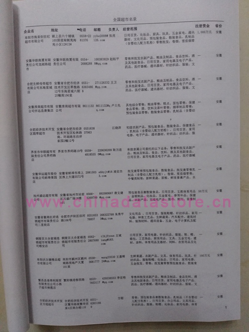 | 全國(guó)超市企業(yè)黃頁(yè) | 全國(guó)所有超市企業(yè)黃頁(yè) | 80% - 90% | 3000元 | 附贈(zèng)上下冊(cè)超市紙質(zhì)印刷品 |